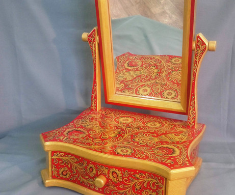 Вы увидите филигранную роспись браслетов, колье, шкатулок, а также предметов быта и мебели.
